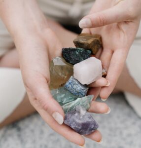 Je kunt jezelf ook behandelen met stenen, denk dan aan je chakra’s en de kleuren die daar aan verbonden zijn. Ga op je bed liggen zet een fijn muziekje op en leg dan de stenen op je lichamelijke chakra’s van je staartbeen tussen je bovenbenen daarna op je onderbuik, zonnevlecht, hart, keel, 3e oog en dan leg je je kruin steen net boven je hoofd. Blijf hier dan mee liggen voor ongeveer 15 min, het mag natuurlijk ook langer. Je haalt ze dan weer weg door eerst de kruin chakra weg te halen en daarna 3e oog, keel, hart, zonnevlecht, onderbuik en staartbeen.