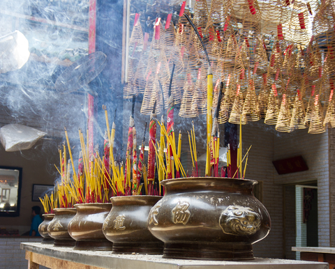 De stijgende rook wordt vaak gezien als een symbool van gebeden die opstijgen naar de hemel, of verlichting die van binnenuit naar buiten straalt.